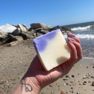 Ingredients: Cocos Nucifera Oil, Aqua, Butyrospermum Parkii Butter, Sodium Hydroxide, Simmondsia Chinensis (Jojoba) Seed Oil, Argania Spinosa Kernel Oil And Olus Oil, Aloe Barbadensis Leaf Juice, Theobroma Cacao Seed Butter, Allantoin, Lavandula Angustifolia Oil, Melissa Offcinalis Leaf Oil, Thymus Vulgaris Oil, Linalool*, Citral*