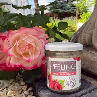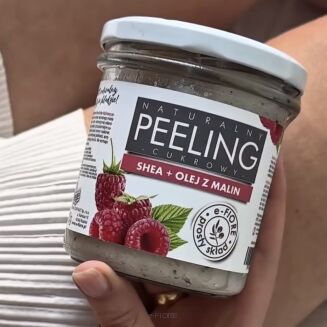 • Naturalny peeling cukrowy MALINOWY z olejkiem i nasionami malin 300g